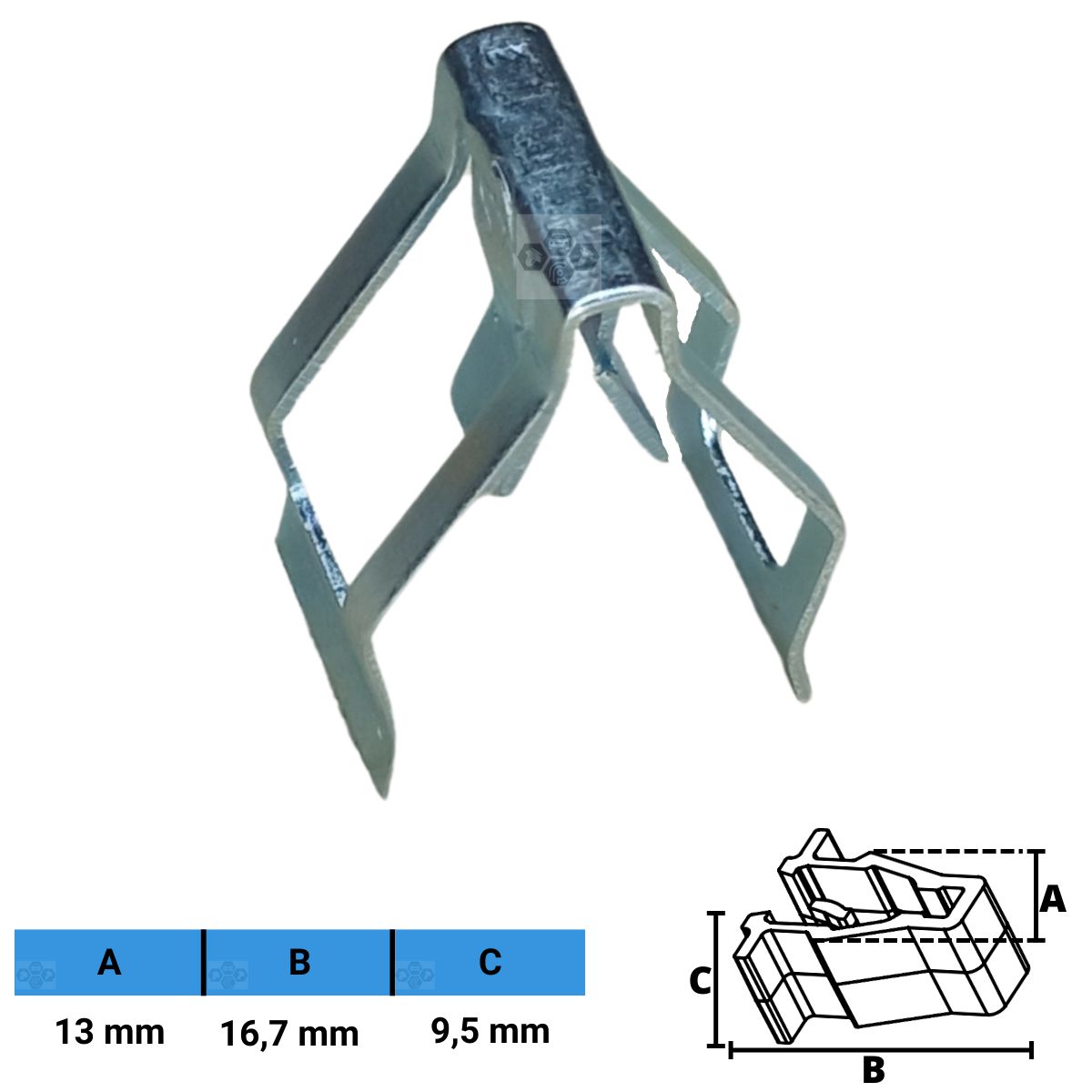 Grampo metálico automotivo compatível com diversas marcas e modelos.